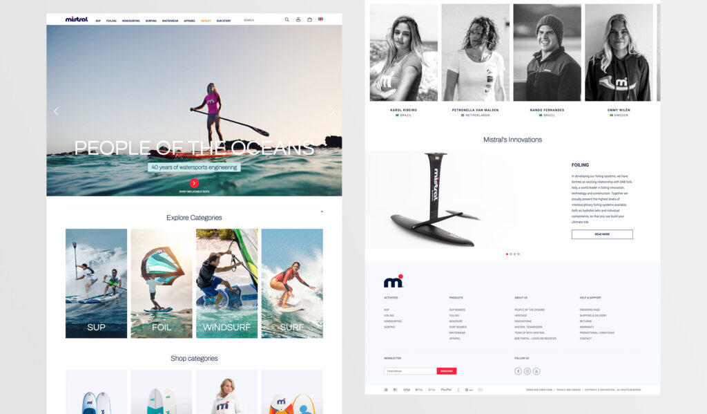 To continue this journey, Mistral sought to revitalize its digital presence with a website that would reflect its adventurous legacy and appeal to a contemporary audience. With the UX design already underway, the focus was on creating a visually compelling experience that perfectly captured Mistral’s pioneering history and new brand identity. This involved showcasing Mistral's unique heritage while aligning with the fresh and modern outlook of today’s water sports enthusiasts.